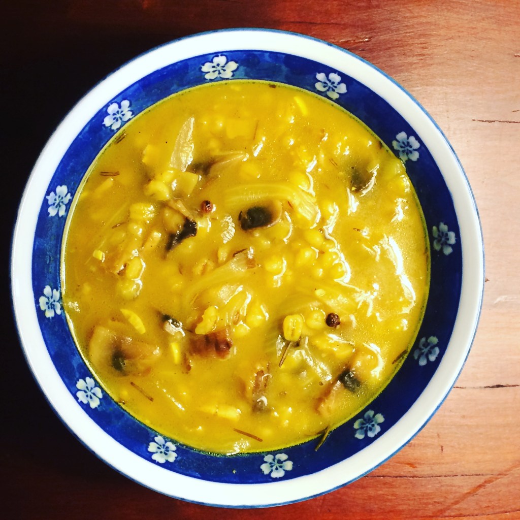 Items referenced in recipe suggestions below: rice, quinoa, butternut squash, carrots, onions, garlic, canned or dried legumes, a whole chicken, pork tenderloin, vegetable stock, eggs, scallions, frozen peas and carrots, oatmeal, apples, baby spinach or arugula, soy sauce / tamari, toasted sesame oil.